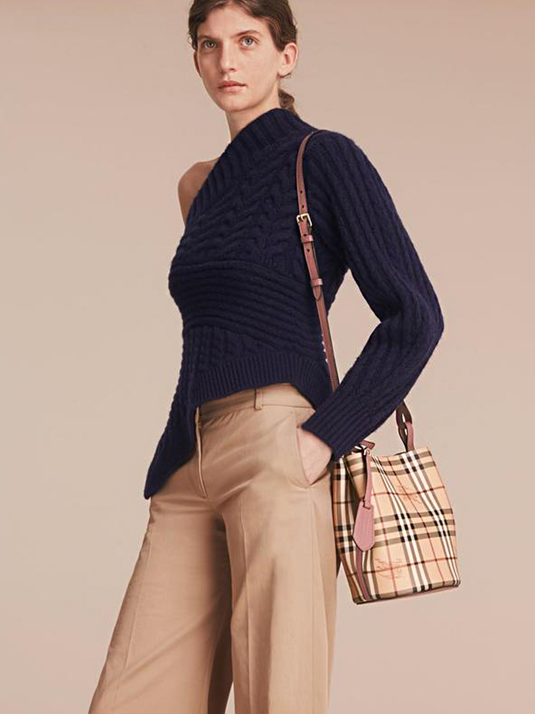 BURBERRY Haymarket 戰馬格紋/經典素色水桶包