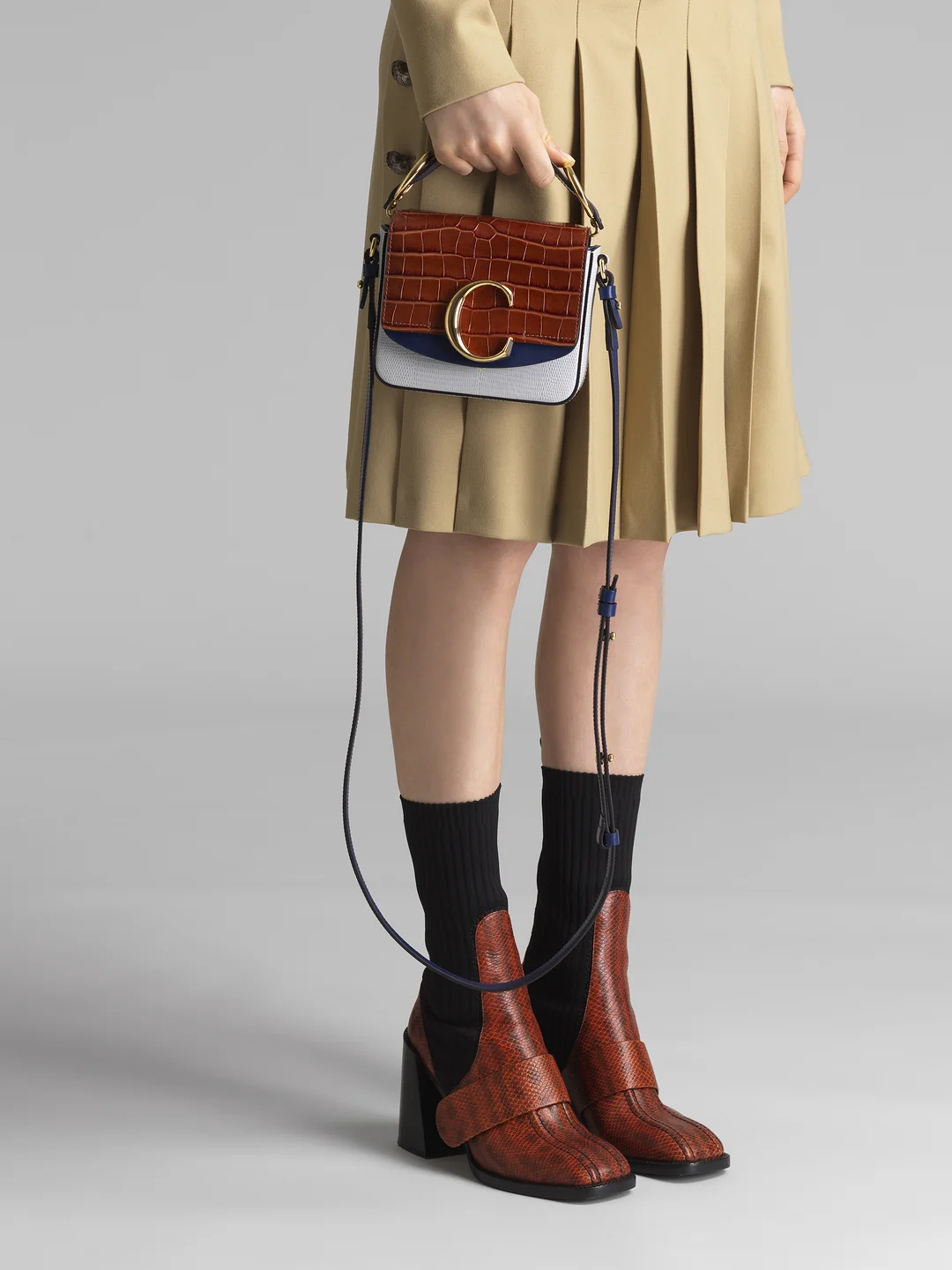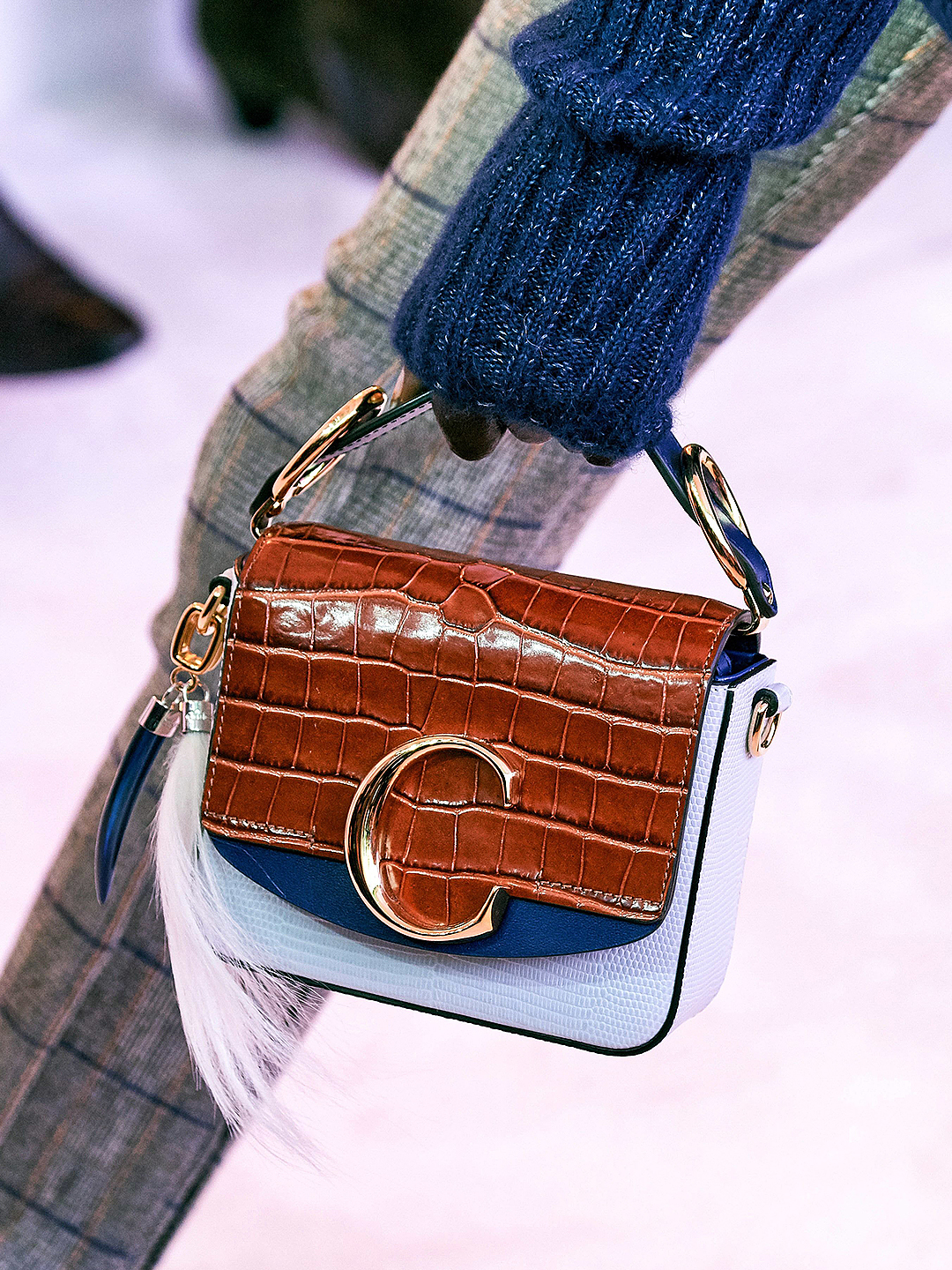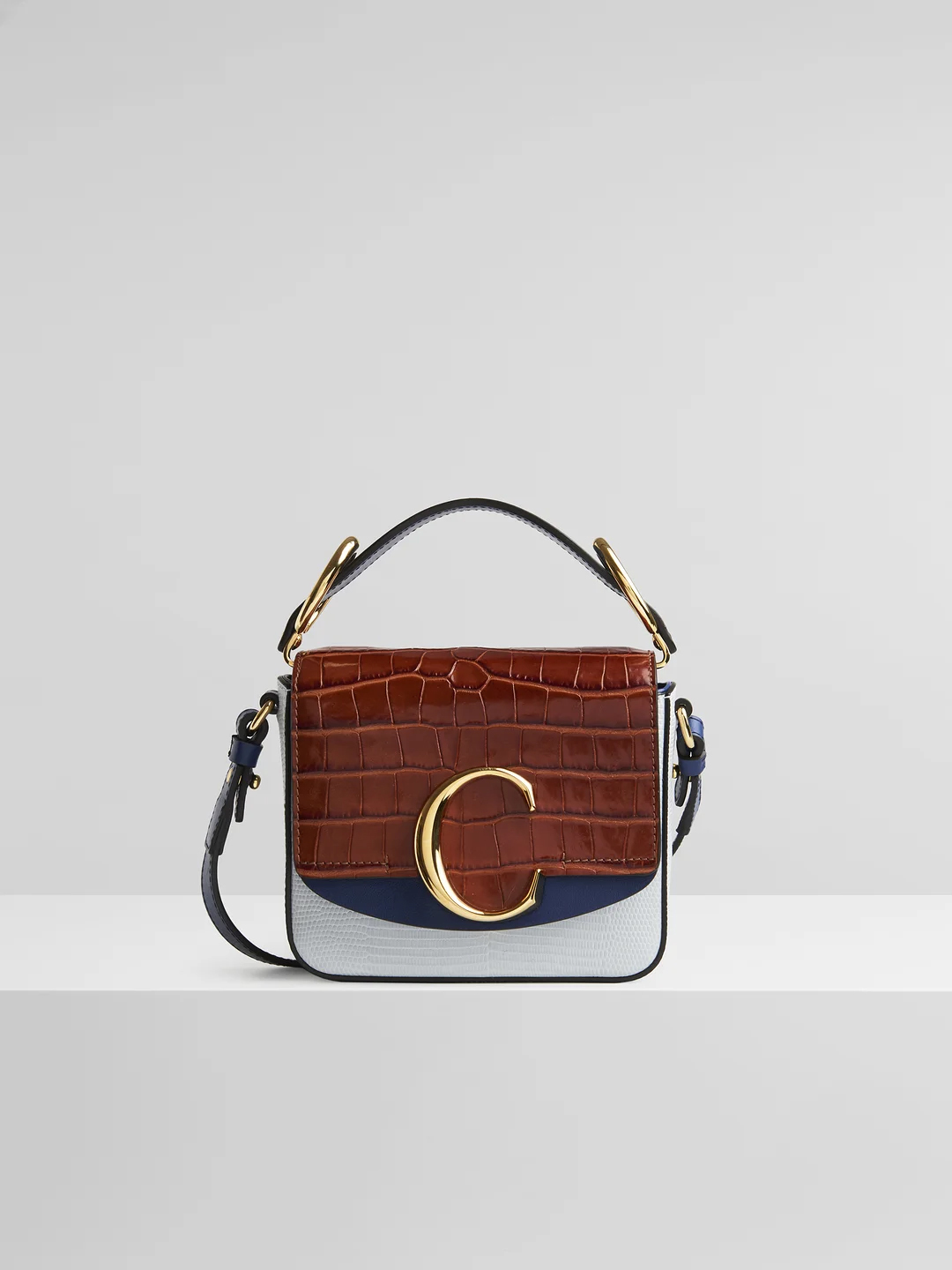 CHLOE Mini C Bag 拼色牛皮壓鱷魚手提/斜背兩用包