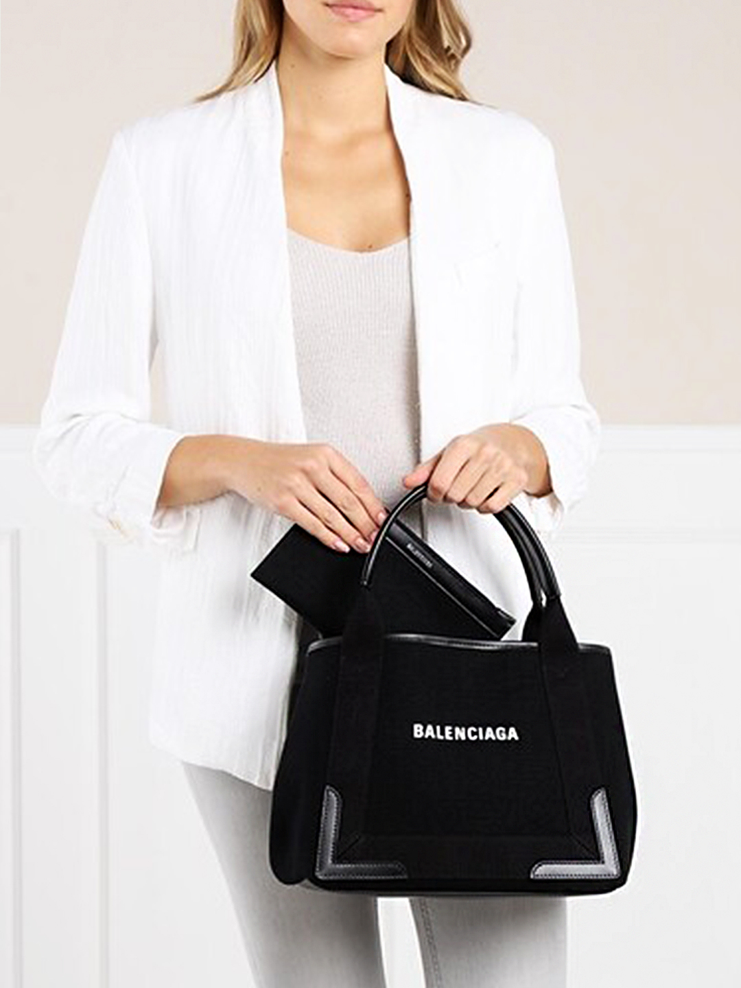 BALENCIAGA Navy Cabas 字母帆布手提/肩背包