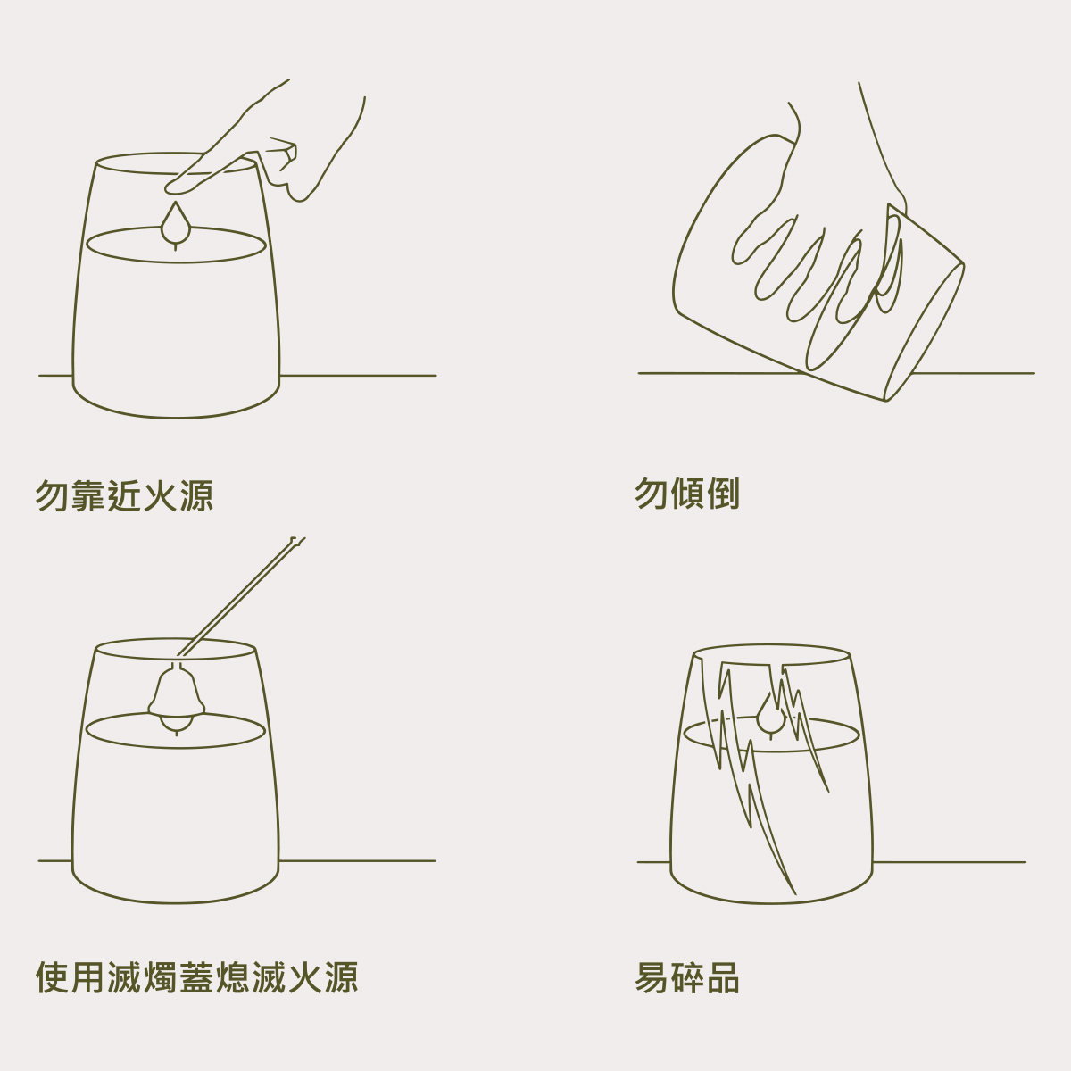 • 在使用蠟燭時,應該遠離易燃物品,並放在可見範圍內。