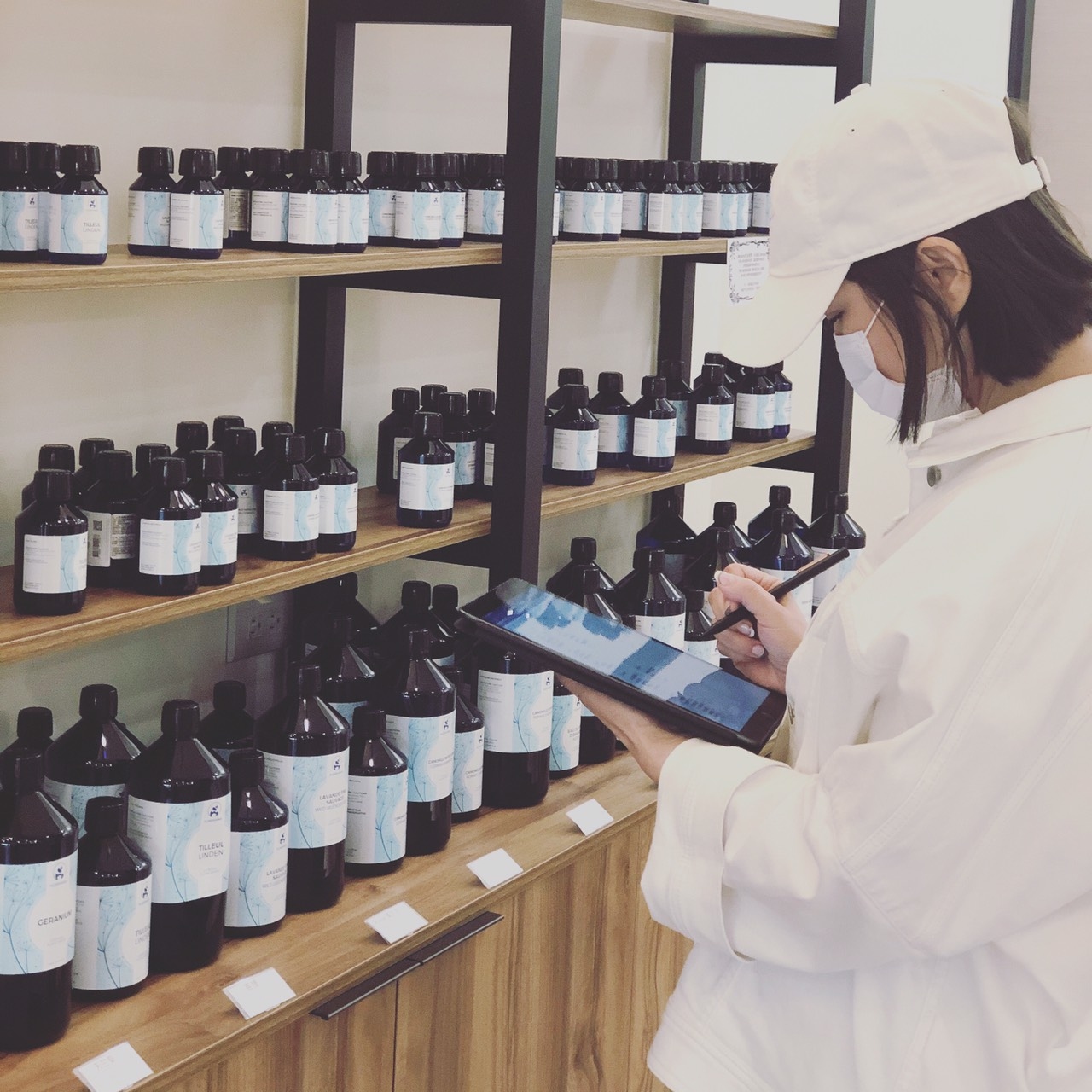 FEDE 執行長與專業調香師,將香氣集結在一起,仔細而專注地聞著這些來製法國的純天然精油,進而篩選出我們要送給屬於妳的專屬香氣。