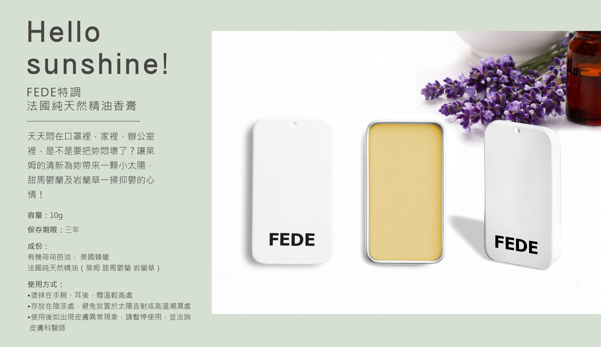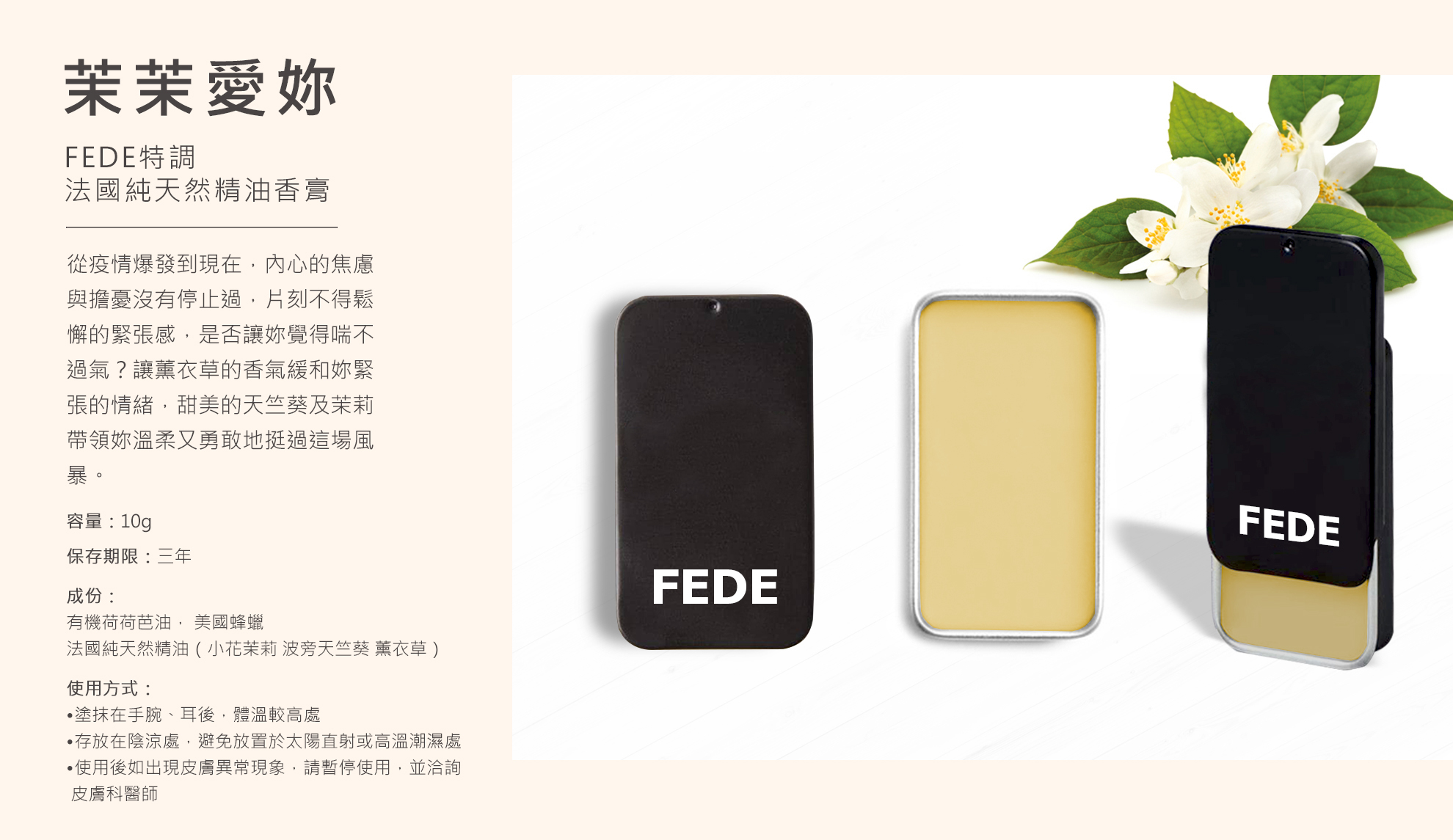 送FEDE特製法國純天然精油香膏 / 1個