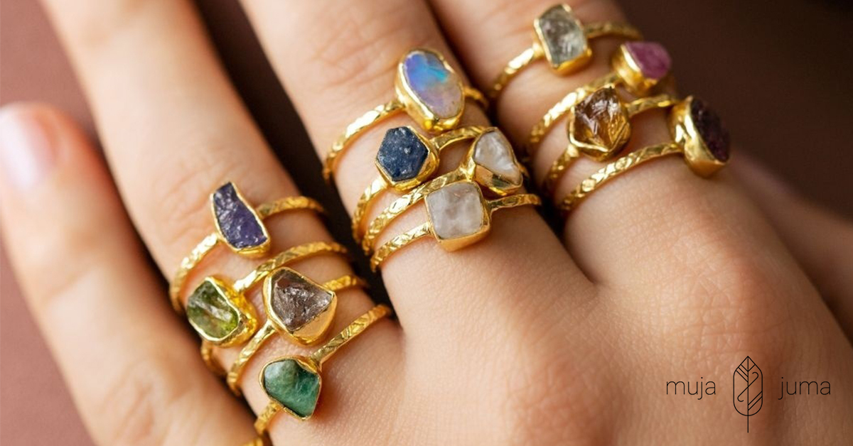 Muja Juma 每件作品均採用925純銀鍍金和使用經公平交易製成的各種顏色的天然寶石的精美配飾,精心手工製作,每塊石頭的顏色和形狀都會有所不同,表面略微凹凸不平,這意味著每件珠寶都是獨一無二的,並散發出自然的魅力。
