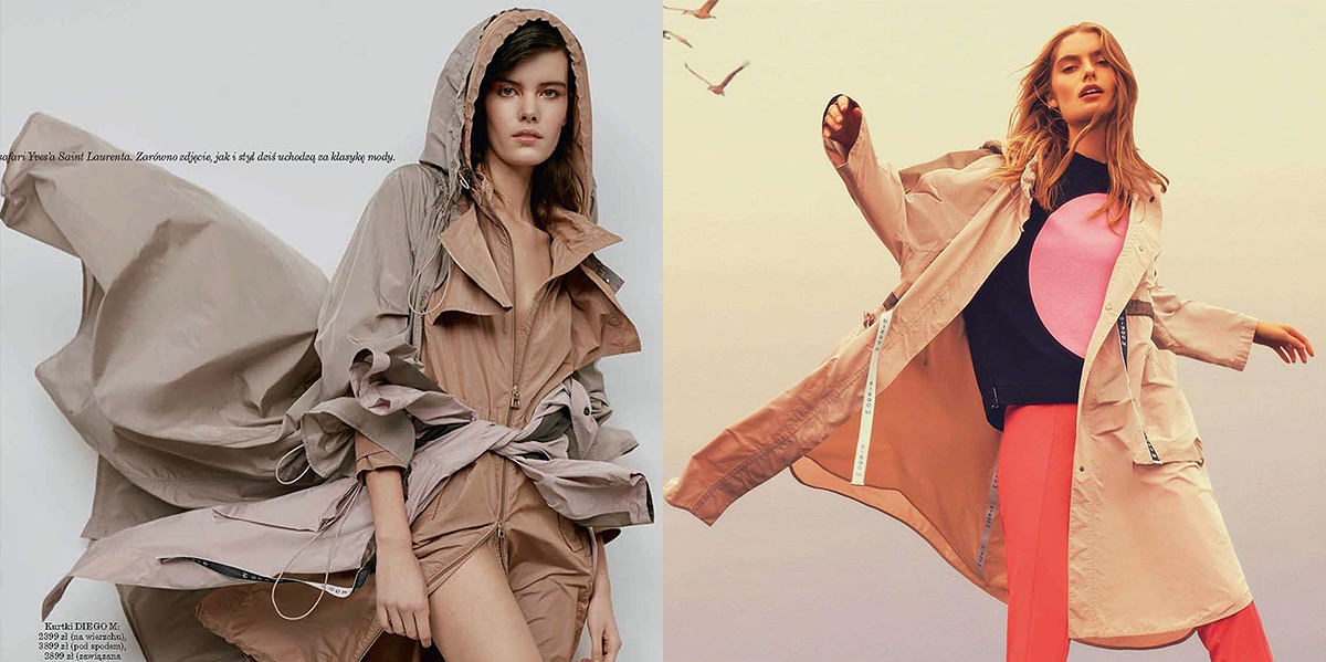 DIEGO M全新翻轉大家對風衣及輕羽綊外套的印象,採用透氣材質並運用高科技生產出各種實搭和異材質拼接的款式,並結合運動時尚不斷的研發新的面料和顏色及新的線條和新的耐磨性,以滿足對時尚變化更為敏感的客人。